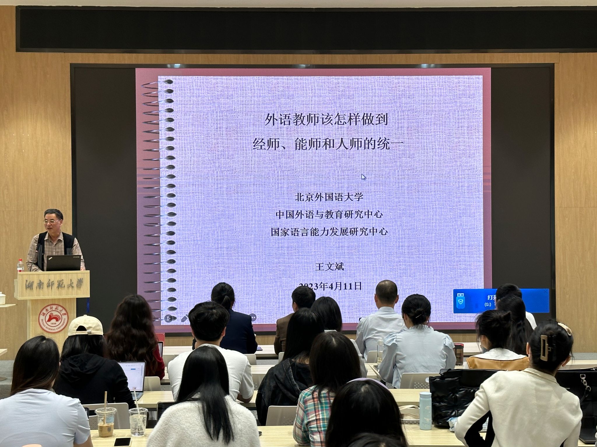 4月11日下午三点,北京外国语大学王文斌教授受邀来澳门pg官网腾龙楼613报告厅做了题为“外语教师该怎样做到经师、能师和人师的统一”的学术讲座。讲座由澳门pg官网邓云华教授主持。