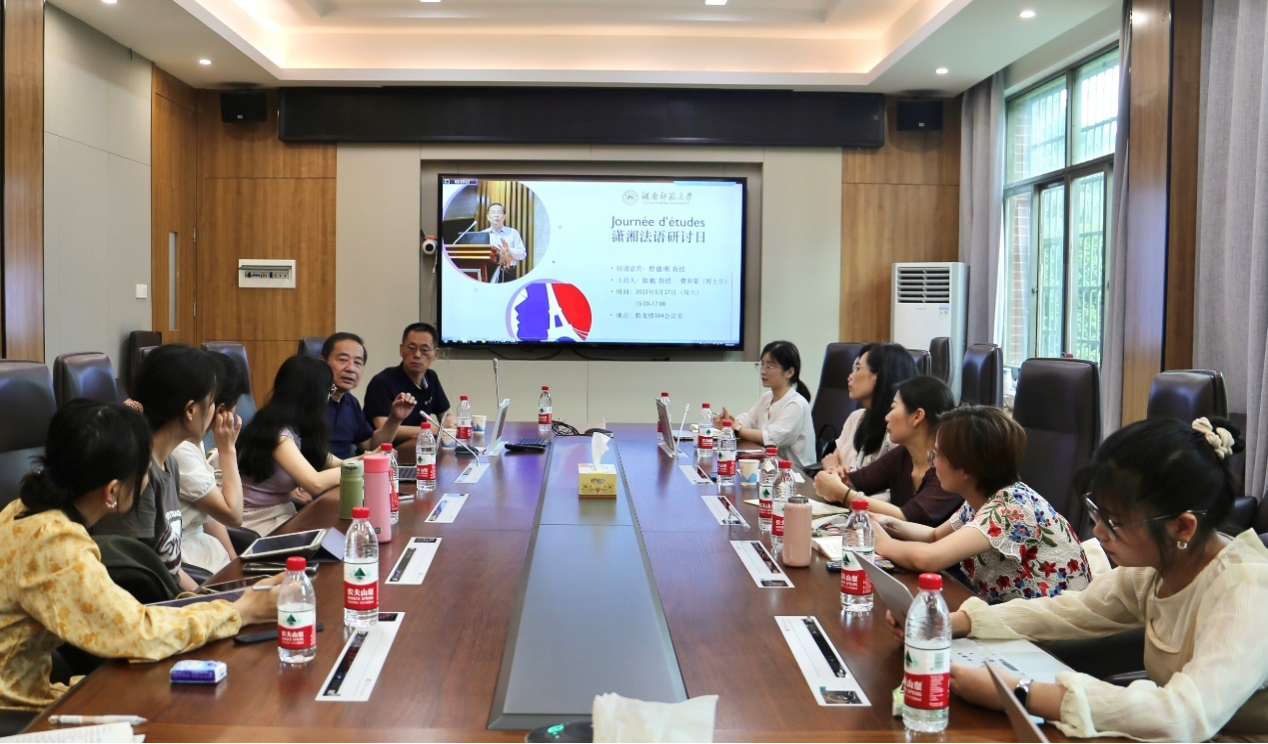(通讯员 金晓童 曹雪 伊伟杰)5月27日下午,澳门pg官方电子平台法语系于腾龙楼204会议室举办首次“潇湘法语研讨日”(Journée d’études)。教育部外语专业指导委员会副主任委员、法语专业教学指导分委员会主任委员、上海外国语大学原校长曹德明教授作为首场研讨会的特邀嘉宾,与法语系师生开展了对话、交流,并共同探讨了法语学习、法语学术研究和法语人才培养等方面,在理念、理论、方法、目标、实践等层面改进与提高的可能性与操作性。此次研讨会由法语系张弛教授和2021级博士生费乔荣主持。