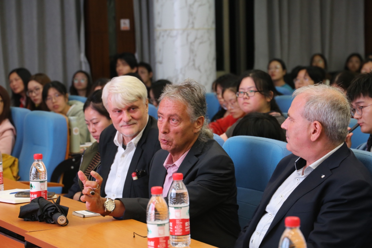 在问答环节,Päßler与Ottmar Ette教授、Ole Doering教授以及现场同学讨论了自然和文化的分割及统一对未来科学知识发展的影响,并且达成了应将洪堡的跨学思维以及他将世界作为整体的理解作为科学知识理解和研究的基本框架的共识。讲座在热烈的掌声中圆满结束,Päßler教授与其他嘉宾热烈的交流让澳门pg官方电子平台的学生们受益匪浅。