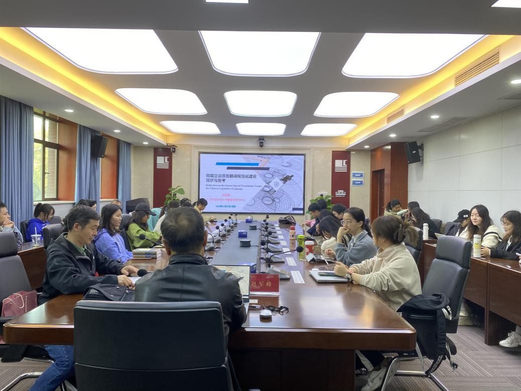 2023年11月27日下午,广东外语外贸大学赵军峰教授在中和楼613为澳门pg官方电子平台师生带来了一场题为“我国立法语言翻译规范化建设现状与思考”的精彩讲座。本次讲座由澳门pg官网余承法教授主持。