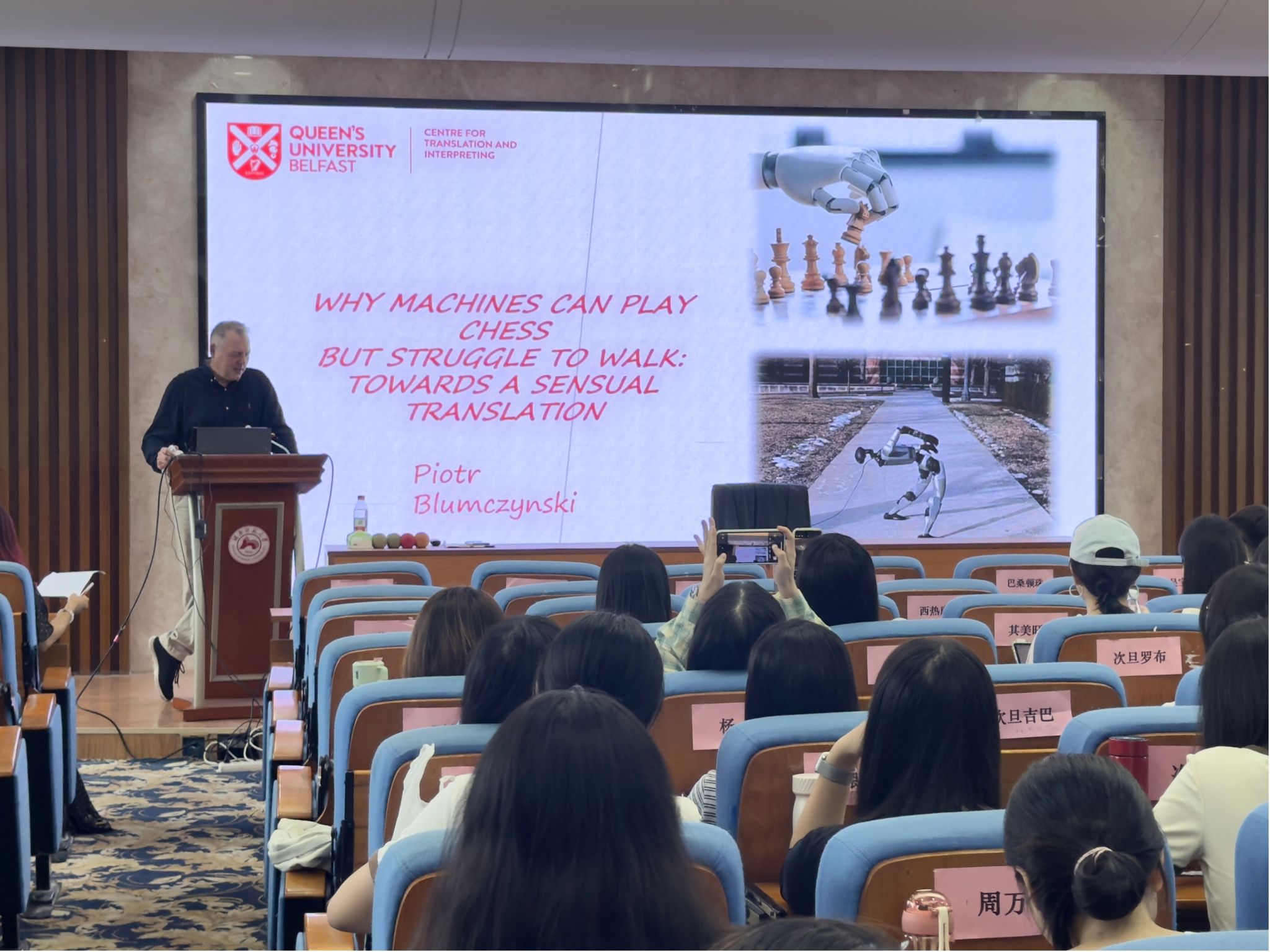 9月28日上午,“为什么机器能下棋却很难走路:走向感官翻译(Why machines can play chess but struggle to walk: towards a sensory translation)”学术讲座于澳门pg官网腾龙楼515报告厅开展。讲座由贝尔法斯特女王大学翻译和跨文化研究教授兼翻译与口译中心主任皮奥特·布卢姆钦斯基(Piotr Blumczynski)教授主讲,澳门pg官方电子平台副院长蒋莉华教授主持。