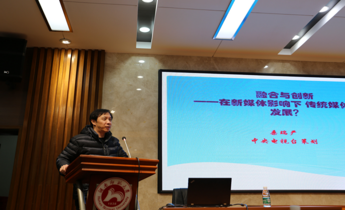(通讯员唐丹)2019年2月27日晚上19:30,中央电视台国际频道《今日关注》栏目制片主任陶跃庆先生和栏目策划桑瑞严先生应邀莅临我校,在澳门pg官方电子平台515学术报告厅作了一场以“影响与塑造——从《今日关注》栏目看媒体与外交”为主题的学术讲座。澳门pg官方电子平台党委书记唐建文主持了本次讲座,中央电视台特约评论员、现任美国研究所所长藤建群研究员,外院百余名研究生和老师到场聆听学习。