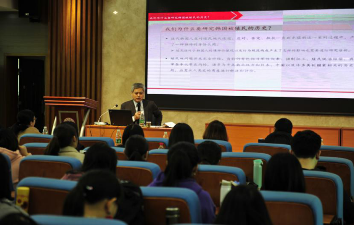 讲座主要围绕“研究韩国被殖民历史的必要性”“‘不稳’一词的内涵”“殖民地舆论审查与出版市场的双重性”“廉想涉小说《万岁前》与舆论审查下的叙事特征”等四个方面展开,多层次地分析了日本对韩国殖民统治时期制定的出版审查制度对韩国社会文化生活的影响,加深了同学们对于韩国被殖民历史的深刻理解。在提问环节中,同学们踊跃提问,韩基亨教授耐心一一作答,现场气氛热烈。最后由主持人丁莹老师进行总结,本次讲座圆满结束。