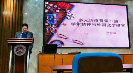 2018年4月25日下午4点20分,上海外国语大学教授、“金牌博导”、外语学科学术委员会主任李维屏教授莅临澳门pg官网讲学。李教授以“多元价值背景下的学术精神与外国文学研究”为题,为澳门pg官网莘莘学子带来一场精彩的学术“正能量”讲座。讲座由澳门pg官方电子平台邓颖玲教授和曹波教授主持,学院百余名师生到场聆听了此次学术讲座。