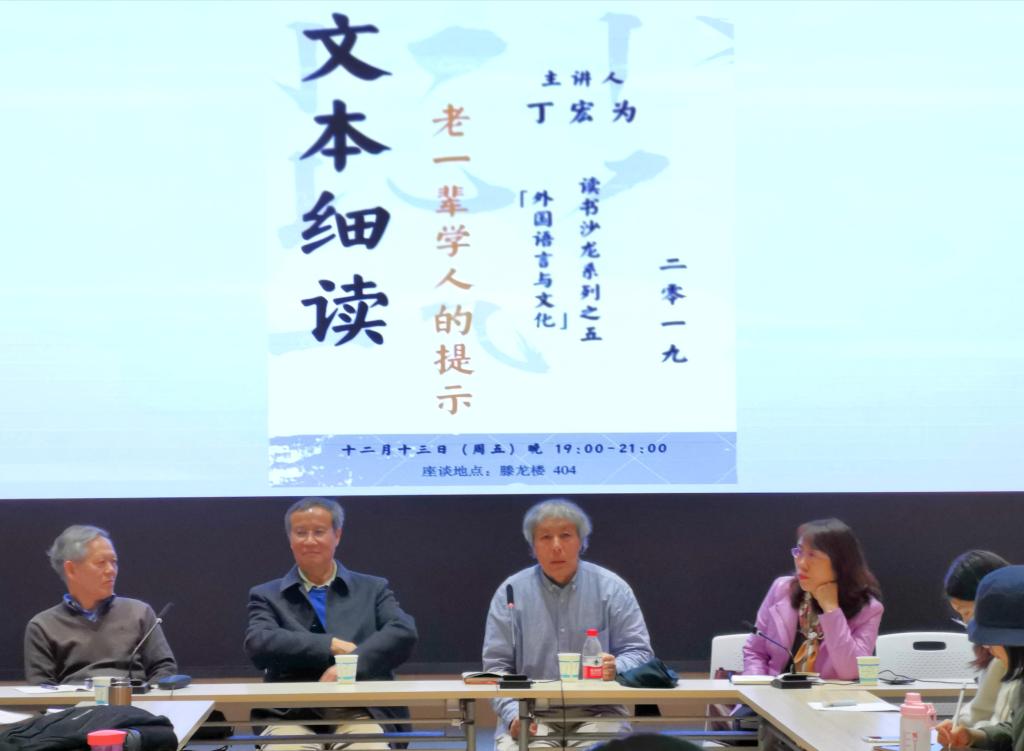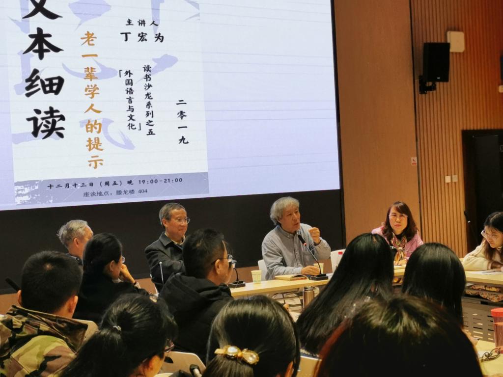 (通讯员:李若亚)12月13日,由《外国语言与文化》编辑部主办的“文本细读”读书沙龙在澳门pg官方电子平台腾龙楼613举行。北京大学丁宏为老师、澳门pg官方电子平台曾艳钰老师、阮炜老师和刘曙雄老师同数百名与会者一起就“文本细读”和“文学研究路径”等问题展开了热烈讨论。