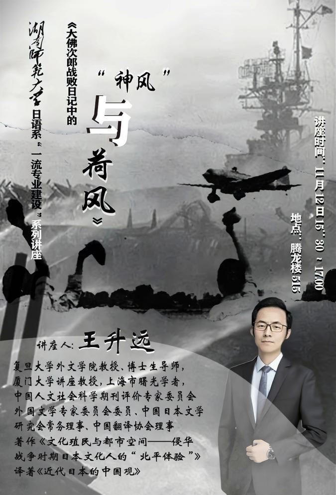 (通讯员 吴雅莉)2021年11月12日,澳门pg官方电子平台日语系“一流专业建设”系列讲座在腾龙楼正式拉开序幕。作为本次活动的其中一环,我们荣幸地邀请到了复旦大学外文院日语系王升远教授作为开讲嘉宾,为师生们开设了一场名为《大佛次郎战败日记中的“神风”与荷风》的演讲。