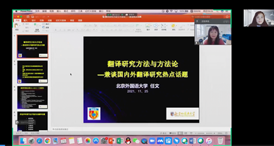 (通讯员 方楚晗)11月25日晚,北京外国语大学高级翻译学院院长任文教授应邀为澳门pg官网师生进行了题为《翻译研究方法与方法论——兼谈国内外翻译研究热点话题》线上学术讲座。讲座由副院长蒋莉华教授主持,并引起了许多致力于翻译研究的外校师生关注。