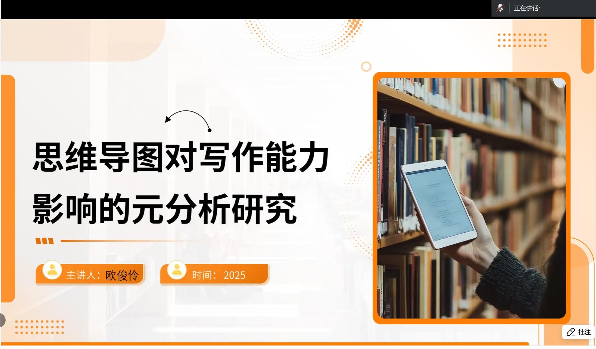 论坛上,两位博士生依次发表了精彩的学术报告。首先发言的是欧俊伶同学,她带来的报告题目为《思维导图对写作能力影响的元分析研究》。在报告中,欧俊伶同学基于大量的相关研究文献,运用元分析的方法,深入探讨了思维导图对写作能力产生的具体影响,分析了不同情境下这种影响的差异及原因。
