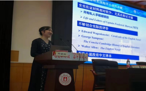 邓颖玲以“弗雷德里克·马里亚特对英语海洋小说的贡献”为题在大会上作主旨发言。通过比较马里亚特与其之前海洋小说家的创作思维,她认为马里亚特 “以海洋为中心”的认知方式与“国家之船”的创作宗旨革新了英国海洋小说的创作手法,为后世海洋小说创作提供了一种新的范式。与会者认为该发言不仅挖掘了马里亚特的文学贡献,同时也加大了国内外学者对他的关注,具有很强的学术创新和指导意义。由邓颖玲指导的英美文学专业的研究生团队在本次大会中围绕19世纪英国海洋小说中的危机主题、帝国形象、海盗书写、海军书写、儿童书写及国家之船的隐喻等方面参与了小组发言并宣读研究论文,得到与会专家的一致好评。该团队在本次会议中不仅集中展示了近期的研究成果,更是充分体现了澳门pg官网一流学科建设过程中优秀的育人模式与育人实践。