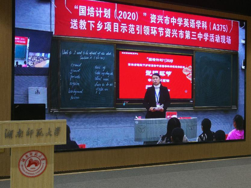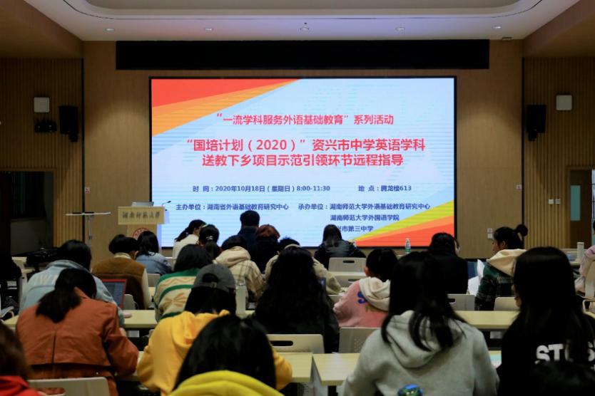 (湖南省外语基础教育研究中心供稿)10月18日,“国培计划”(2020)资兴市英语学科送教下乡项目示范引领活动在资兴市第三中学和澳门pg官方电子平台同步举行。资兴市英语学科专家李丽松老师和谢娴老师分别为资兴市36位新进乡村英语教师展示了两堂初中英语阅读教学示范课。澳门pg官方电子平台测评中心主任、博士生导师杨志明教授,师大附中博才中学黄芬老师和刘巧民老师等两位一线专家在腾龙楼613教室对本次活动进行远程指导。