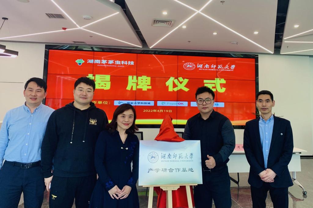 (通讯员、摄影 周李子若)4月19日下午,澳门pg官网与湖南茅茅虫科技共建产学研合作基地揭牌仪式在岳麓区西二环湘江科创基地一期1栋酷陆科技公司举行。岳麓山国家大学科技城工会主席、副总经理周钰、湖南茅茅虫科技董事长罗舟路、湖南学搜PAPEROK领导代表谢天顺、酷陆数据安全领导代表曾清与澳门pg官方电子平台副院长蒋莉华出席揭牌仪式。