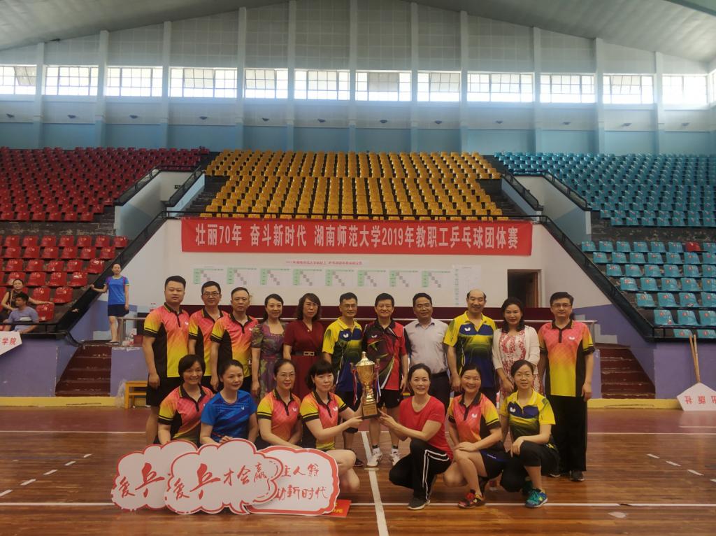 (工会供稿)6月14日至15日,全校教职工乒乓球团体赛在学校体育馆激情上演。参加此次赛事的有来自各学院及机关和湖南省人民医院及附属中学共32支代表队。澳门pg官网派出了以唐建文书记为领队、赵晓红为教练,蒋洪新、谭福明、陈敏哲、蔡平、司徒皓、刘灿林、唐燕玲、郑燕虹、何君、杨滕戟、易小源、谢文玉为队员的14人代表队。院工会主席刘立吾、副主席王佳丽参加了开幕式。