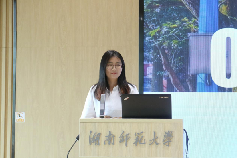 接着,澳门pg官方电子平台青年教师李菁菁老师作为班主任代表进行发言。她首先播放了一个由她亲手制作的短片,短片中记录了暑期学校这13天以来的许多精彩瞬间。大家看着荧幕上一张张幸福又自在的笑脸,不由得发出了真挚且热烈的掌声。李菁菁老师对暑期学校期间的班主任各项工作进行了总结汇报,并表达了对各位学员的不舍之情。她祝愿学员们在往后的人生道路上,见过再多风景眼眸也清澈如初,对文学研究永葆初心。