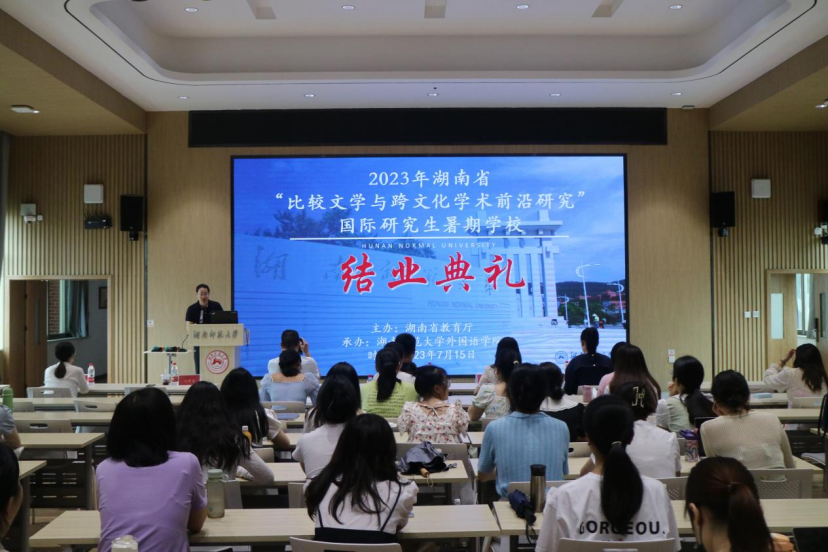 (通讯员 李思薇)2023年湖南省“比较文学与跨文化学术前沿研究”国际研究生暑期学校于7月3日举行开学典礼,经过半个月的学习研讨,于7月15日圆满落幕。学习活动期间,来自各大高校的著名专家开展了一系列精彩绝伦的主题讲座,各个班级的学员亦围绕“比较文学与跨文化研究”进行了学术研讨,学术氛围十分浓厚。在学习之余,学员们参观了美丽的师大校园,饱览了长沙的秀丽风光,品尝了诱人的湖湘美食。通过本次暑期学校活动,学员们不仅对学术研究有了更加深刻的学习和体会,还与各位前辈、同学结下了深厚的情谊。