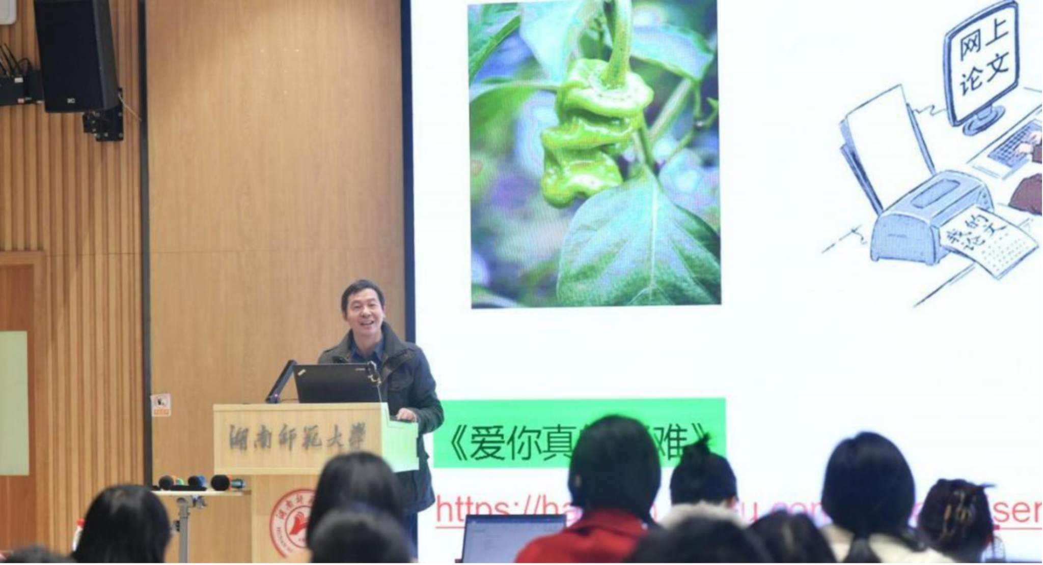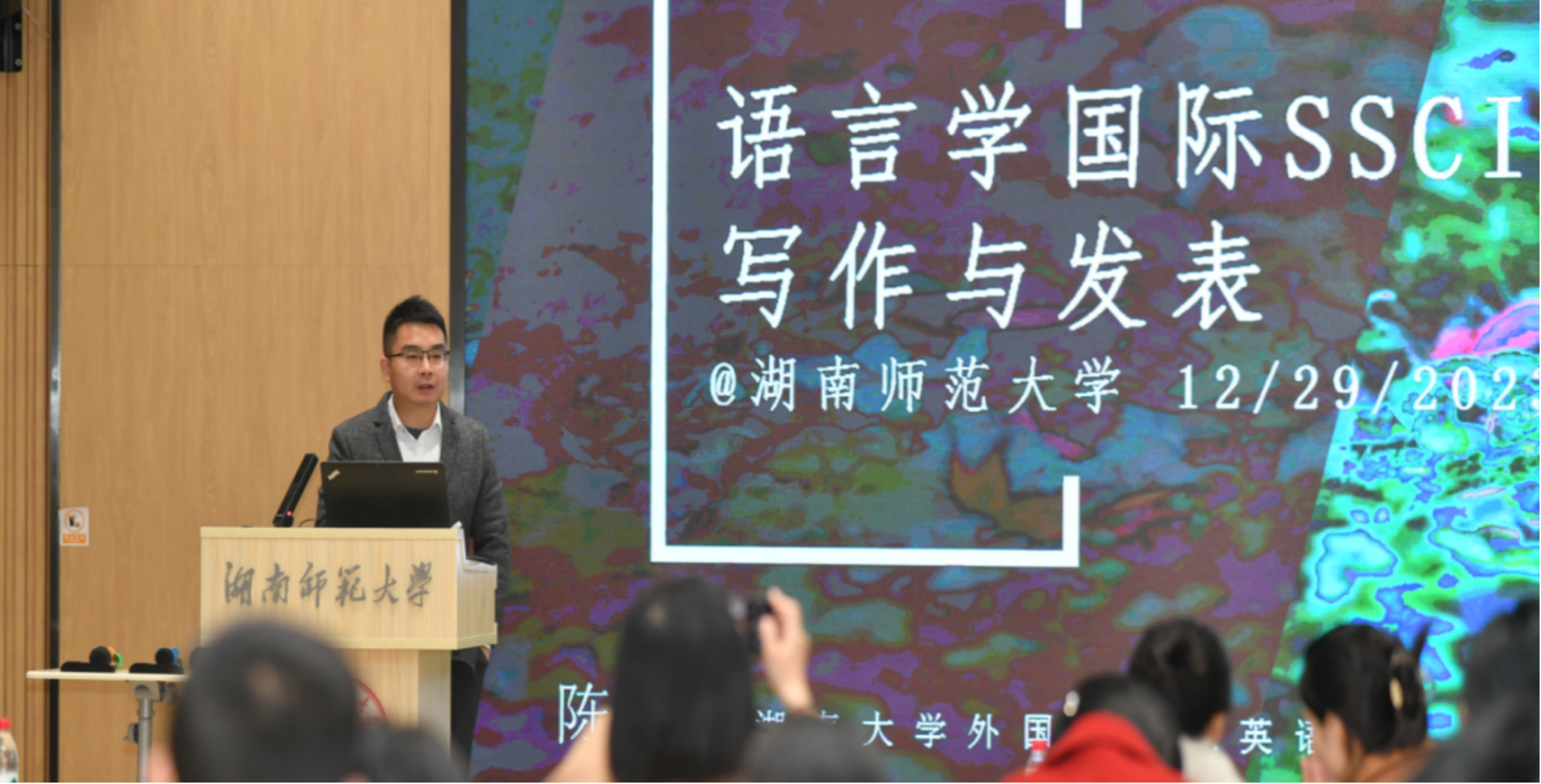 在专家主旨发言环节,陈飞教授以“语言学国际SSCI期刊论文写作与发表”为题,从SSCI期刊的种类、论文初稿撰写与修改、期刊选择与论文投递、同行评议等方面系统讲授了语言学国际SSCI期刊论文写作与发表的方法论。余承法教授以“学术研究集腋成裘的六条‘铁律’:以钱钟书‘化境说’研究为例”为题,提出了围绕1个中心、筑牢2个基本点、进行3层训练、展现4种类型、拓宽5条途径、夯实6种功力的学术研究的长期策略与方法。两位学者发言中的生动案例、扎实的资料、实用中肯的建议以及感同身受的讲述,深深打动了诸位学子,赢得了全场阵阵掌声。