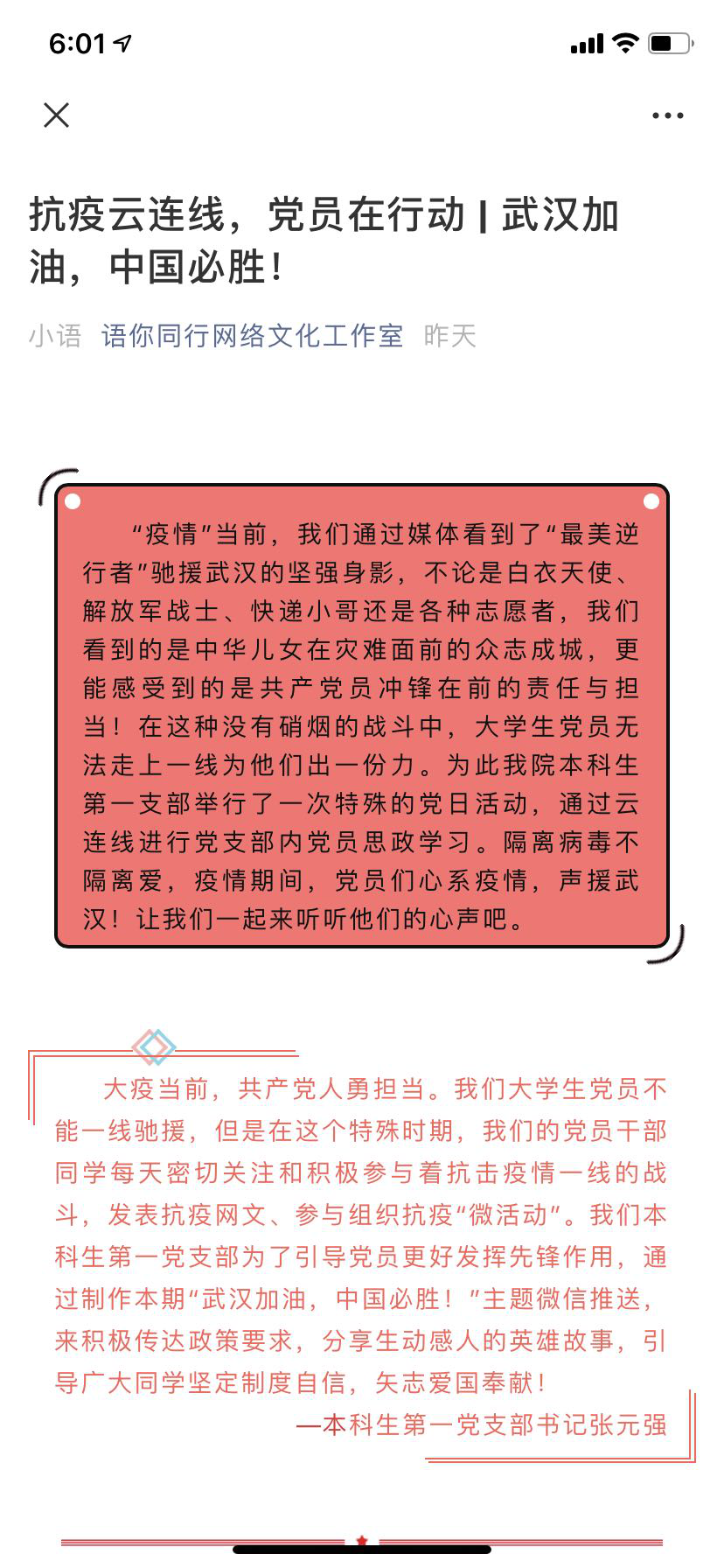 作为“世界一流学科”建设单位,澳门pg官方电子平台把这次疫情事件作为大学生思想政治教育工作的重要契机,对广大学生开展爱国主义教育。以此来积极响应和贯彻落实教育部近日印发的《教育系统关于学习宣传贯彻落实<新时代爱国主义教育实施纲要>的工作方案》。疫情期间,澳门pg官方电子平台党员学生干部、青年团员同学们每天密切关注和积极参与着抗击疫情一线的战斗,累积发表抗疫网文近100篇,制作抗疫主题微信推送20余期,积极参与教育部、团中央、学校学院组织的抗疫“微活动”6000余次。