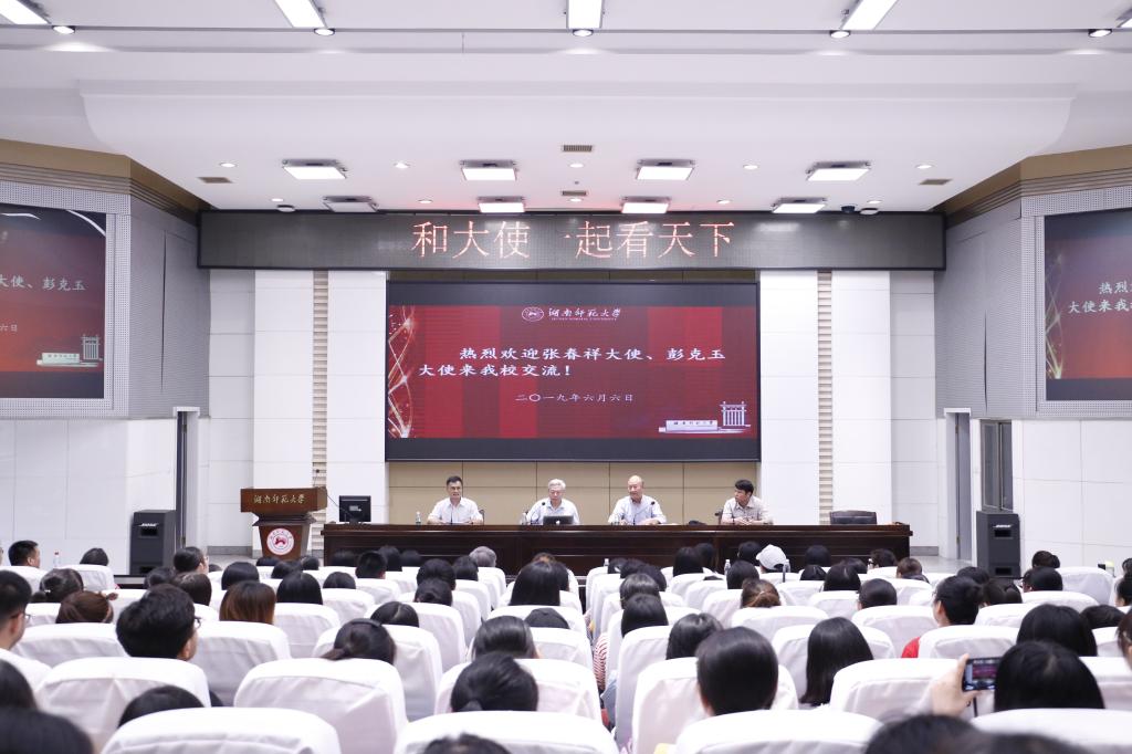近日,澳门pg官网于至善讲堂举办“和大使一看天下”面对面座谈,原驻巴基斯坦大使馆大使张春祥、原驻纽约总领事馆总领事彭克玉担任主讲人,座谈由学院党委书记唐建文主持。学院党委副书记贺慧星列席,100余名教工党员、学生党员及160余名学生代表参与座谈。