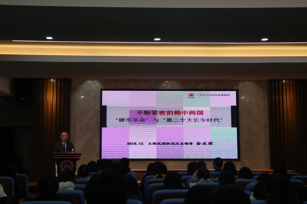 (通讯员 闫超)12月5日上午,韩国驻武汉总领馆总领事金永瑾一行访问澳门pg官方电子平台,并在515学术报告厅讲座,题为“不断紧密的韩中两国——‘硬币革命’与‘第二个大长今时代’”。
