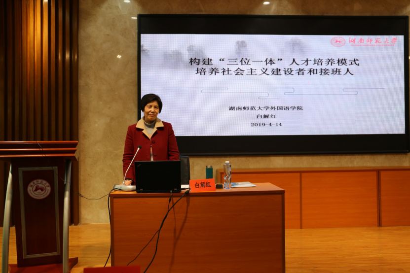 白解红教授长期从事认知语言学、语用学、语义学、语言与文化和高教管理等的教学与研究。享受国务院政府特殊津贴专家,高等教育国家级教学名师,教育部大学外语教学指导委员会原副主任,湖南省语言学会副会长,湖南省翻译协会副会长。2009年、2014年先后获得国家级教学成果一等奖、 二等奖(主持);全国“明德教师奖”获得者,湖南省优秀研究生指导教师,湖南省优秀归国人员,湖南省巾帼百佳,湖南省首批跨世纪学科带头人。