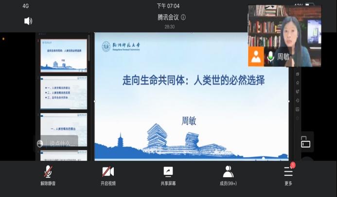 (通讯员:唐茜茜)12月13日19点,澳门pg官网举办了以“走向生命共同体:人类世与资本世之争的启迪”为主题的线上学术讲座,本次讲座由杭州师范大学澳门pg官方电子平台院长周敏教授主讲,澳门pg官网曹波教授主持,共有300余名师生参与了此次讲座。