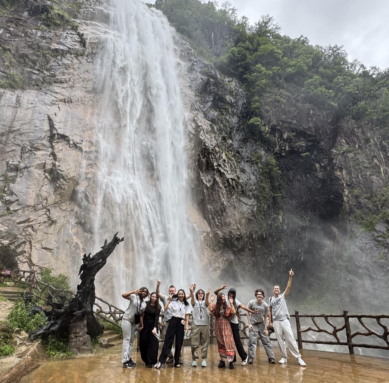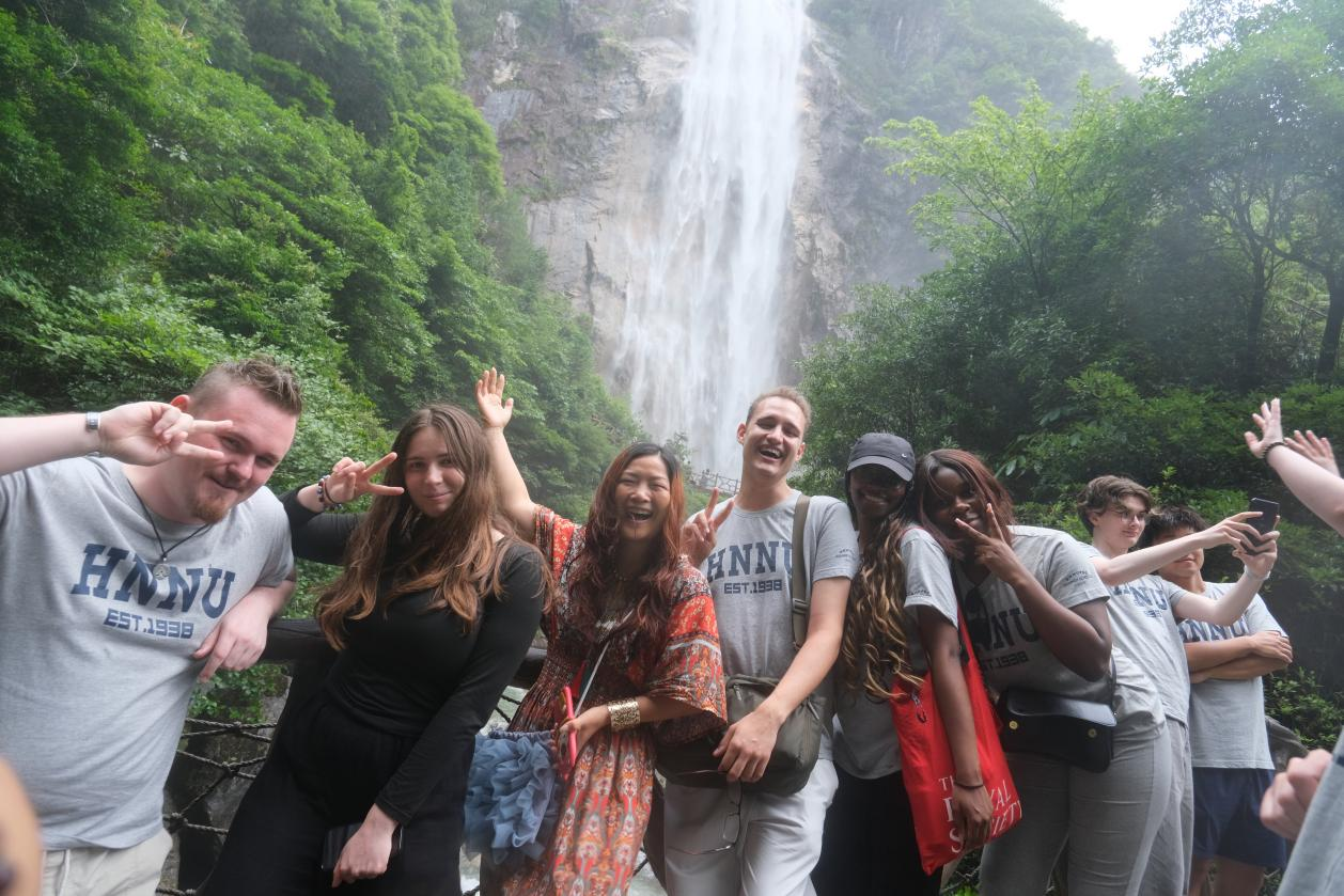 桂东县森林覆盖率高达82%,被上海大世界吉尼斯总部认定为“负氧离子含量最高的县”,而龙溪瀑布区域负氧离子含量最高。留学生们拾级而上,耳侧瀑布的轰鸣声、扑面而来的水雾、满眼的苍翠、满腔的负氧离子激发着满心的欢喜,将长途跋涉的艰辛抛之脑后,一齐近距离感受瀑布的呼吸。中外学子们对于大自然的迷恋在龙溪瀑布氤氲的水雾中升腾交织,谱写着同一首绿色之歌。