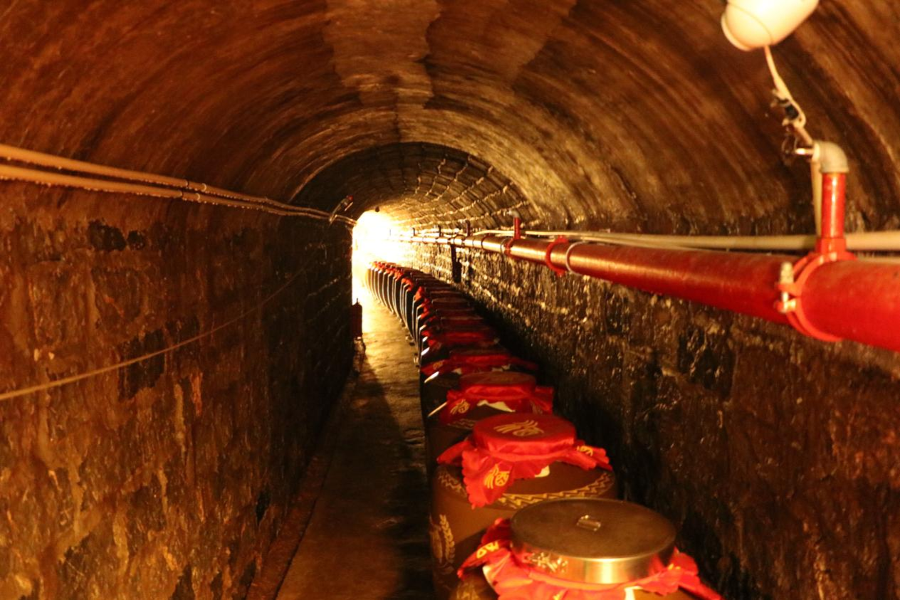 学员们迈入酒仓行酱酒(窖藏)交易中心,一边听取专业人员讲解酱酒酿造工艺与品鉴知识,一边举杯品味酱酒的馨香。接下来,大家转入了上个世纪的防空洞,和平年代成为了酱酒极佳的储藏地,甚至储有私人窖藏,如百岁酒、女儿红、状元红等,使英国学员们了解中国酒文化富含国人对于美好生活的期许和祝福,禁不住感慨中国酒文化的博大精深。