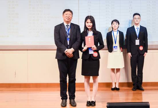 本次大赛经过初赛选拔,共有37名来自华中地区各高校的选手参加。比赛分为命题演讲和即兴演讲两部分,要求选手具有极高的思辨能力和日语组织表达能力。经过一天的苦战,周文颖同学获得一等奖,由教育部高等学校外语类教学指导委员会日语分委员会主任委员修刚教授颁奖并做亲切指导。