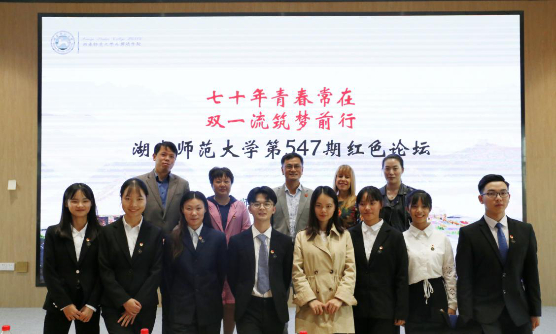 (通讯员 褚岚烽 龚柯翰)10月31日,澳门pg官网在学院613教室举办以“七十年青春常在,双一流筑梦前行”为主题的红色论坛。澳门pg官网知名教授Lauri scheyer,桔子洲街道人大工委副主任、学堂坡社区党总支书记余海艳,学院党委书记唐建文、党委副书记贺慧星、团委书记莫南,学工办老师周凌月、姚雯及180余名学生参加论坛。