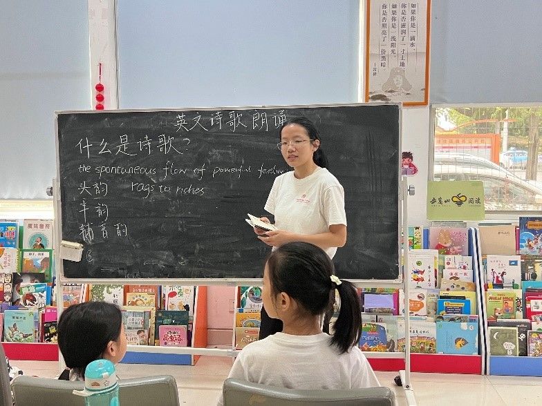 (通讯员 王文静 刘桂君 黄乐妍)7月18日上午,澳门pg官网赴学堂坡社区暑期社会实践团在学堂坡社区服务中心一楼阅览室开展英文诗歌朗诵课堂。实践团成员王文静、贵可俊负责此次课堂教学。