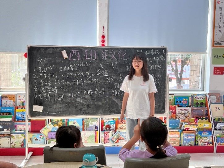 (通讯员 蔡杰 李莹 黄乐妍)7月13日上午,澳门pg官网赴学堂坡社区暑期社会实践团开展“西班牙文化”主题国别文化课堂。实践团成员蔡杰、李莹负责此次课堂教学。