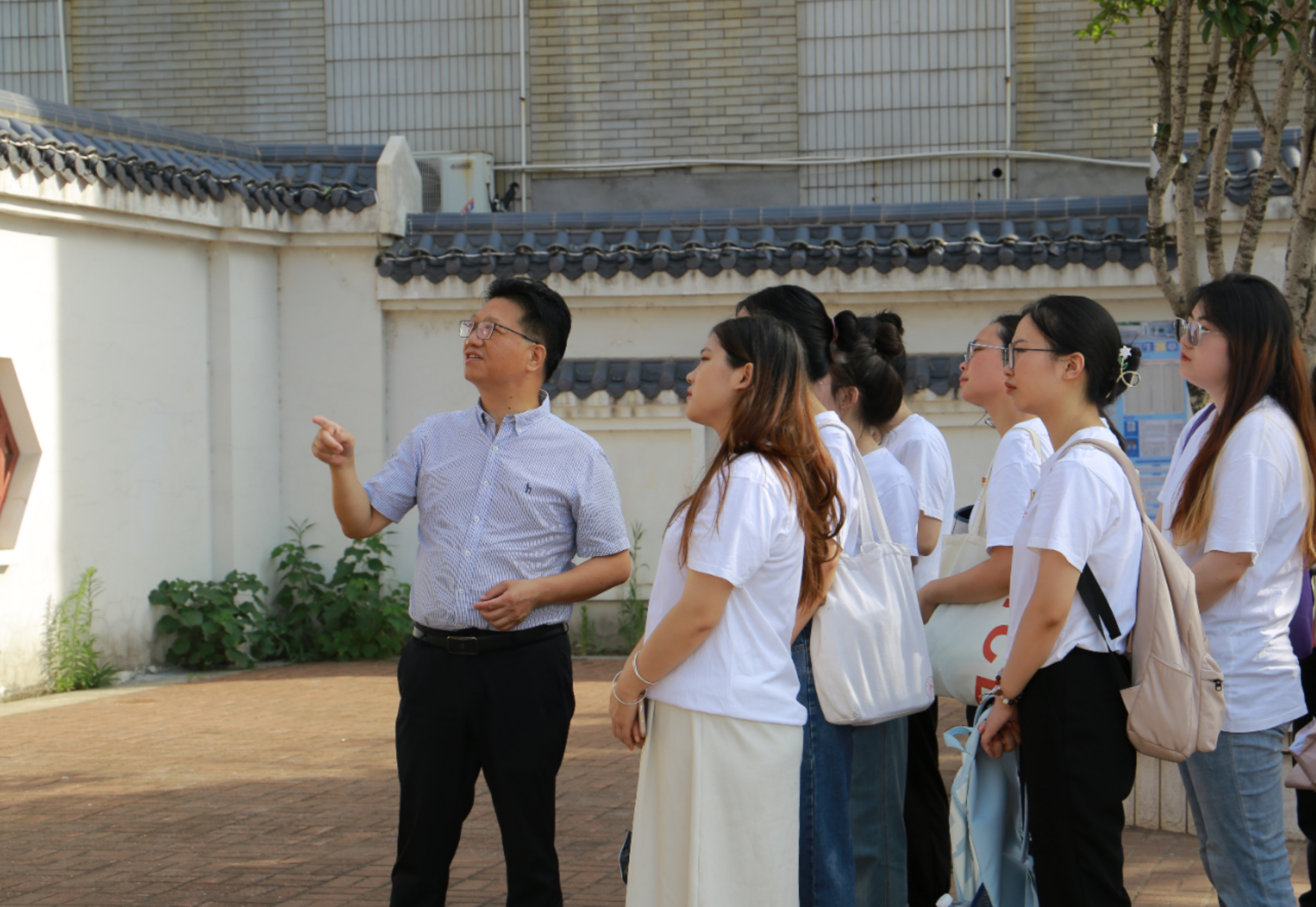 翌日,邓书记亲自带领实践团全体成员,从耒阳一中老校门开始,逐一讲解校内的红色历史文化,实践团听取了邓书记对学校教育教学和校园文化建设工作的介绍。新嵌在老校门两边的对联“高贵精神一校桃李朝诗圣,激活潜力满天凤凰舞霓虹”,生动诠释了耒阳一中的教育情怀和治学品味。“一脉文明,四地荣光,弘纸都千年诗礼,启智慧当仁不让;中天日月,八方惠雨,润华夏九畹芝兰,兴民族舍我其谁”,这幅新悬挂在耒阳市一中东大门两侧的有民族味、耒阳味、一中味、时代味的对联,是学校办学理念与学校优秀历史文化基因有机融合的写照。学校办学楼各处悬挂着对联,蕴含了学校对耒阳一中学子的殷切期望和对教职工严格的治学要求,学校底蕴丰厚的历史文化、“引爆潜能”的办学理念、充满活力和朝气的校园风貌、奋进向上的师生面貌,展现了耒阳市一中持续推进高质量、有特色发展的新内涵。