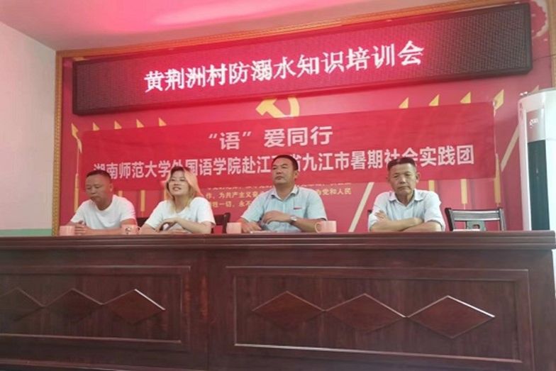 与此同时,在黄荆洲村,实践团与黄荆洲村村委会协同举行告别仪式。黄荆洲村总书记胡波、黄荆洲村村长兼书记詹承富出席此次活动。实践团成员冯萱、王逸轩、王涵静作为代表发言。