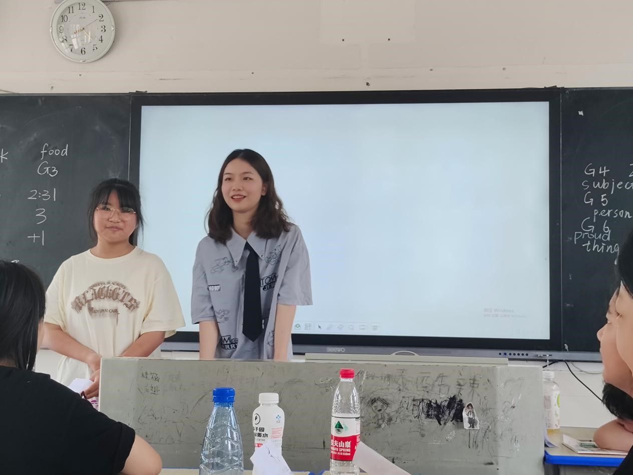 第一节课,陈怡蒙和夏慧组织学生们进行了趣味英语口语游戏英语版“你划我猜”以及通过游戏的方式组织各个小组回答简单的英语问题。随后,两位队员以自己的英语自我介绍开头,鼓励学生们上台进行自我介绍。在这个环节中,学生们积极参与,勇敢表达,在自我介绍中讲述了自己的梦想和爱好。此次课堂,学生们学会用英语流利准确地表述自己的想法,同时也锻炼了他们的英语口语能力,增强了他们的自信心。