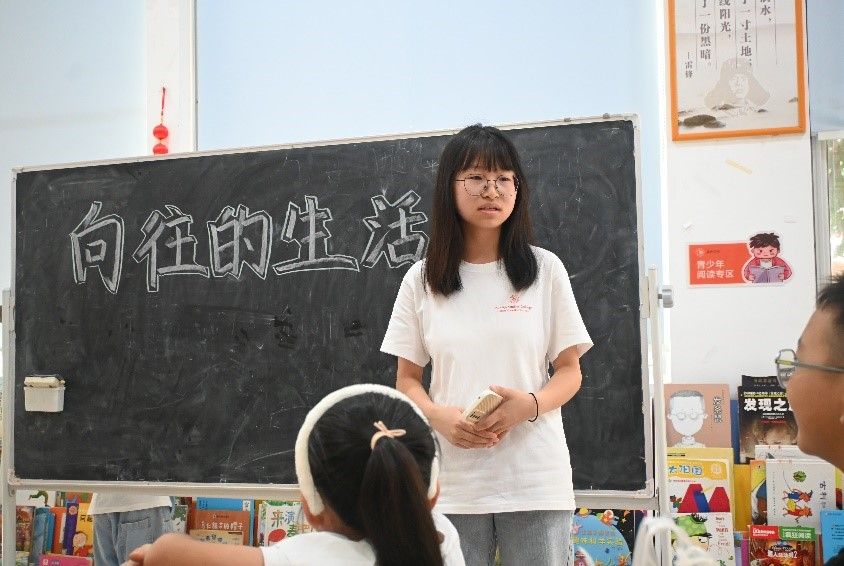 宣讲会最后,实践团成员申蔚颖组织学生从家庭、学校、社会三个方面思考“我向往的生活”,鼓励每位同学说出自己向往的生活,共同分享交流,展望美好的未来。她也启发同学们在追寻“向往的生活”的过程中,保持善良的初心。