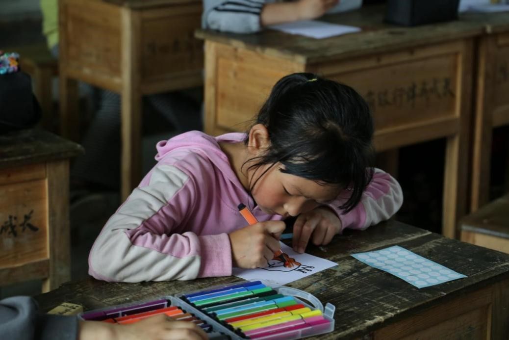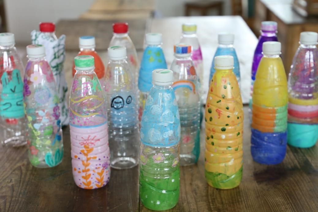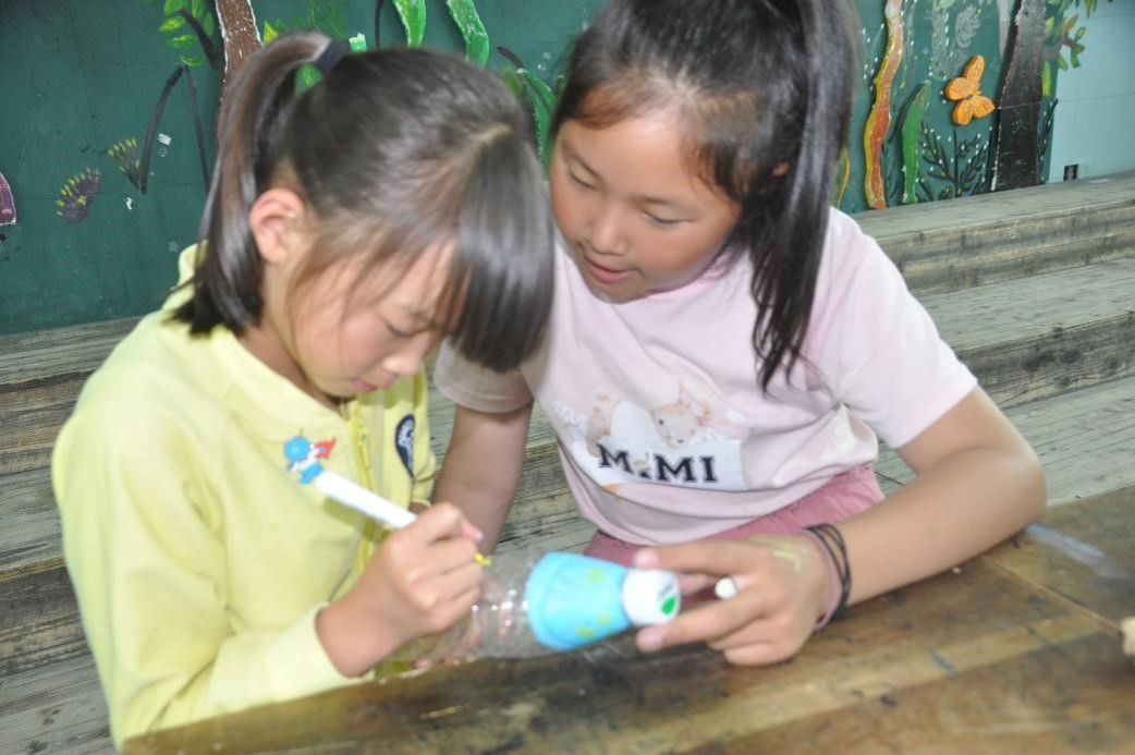 在随后开展的“七彩的瓶子”创意活动中,实践团成员指导同学们以塑料瓶为载体,结合自己的生活实际绘画许多生动有趣的图案,体验将“生活废品”变为“生活艺术品”的乐趣。同学们尽情发挥想象力与创造力,用七彩的画笔和颜料让原本普通的塑料瓶变得缤纷多彩起来。