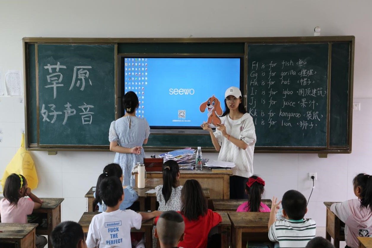(通讯员 吴晴雯 刘江凌)7月26日下午,“语你相遇瑶乡,同心筑梦草原”——澳门pg官网团委赴草原学校暑期社会实践团开展“草原好声音”英文歌曲教学课堂。此次课堂由实践团成员吴晴雯、刘江凌担任主讲人。