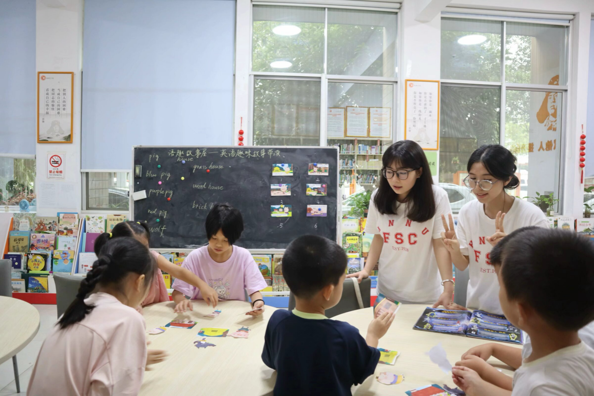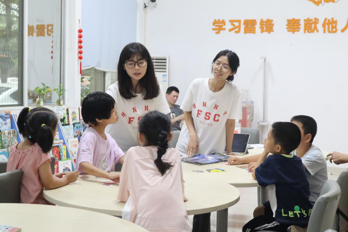 (通讯员 杨佳慧 吴杨炀 彭玉淳)7月8日下午,澳门pg官方电子平台外国语院赴长沙市学堂坡社区暑期社会实践团(以下简称“实践团”)开展英语趣味特色课程。实践团成员杨佳慧、彭玉淳带领小朋友们学习了经典绘本故事以及相关英语表达。