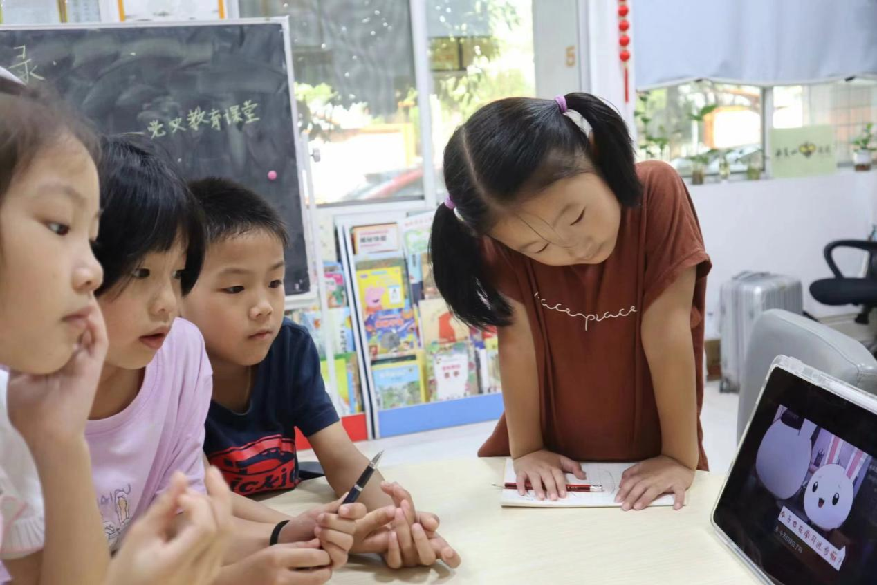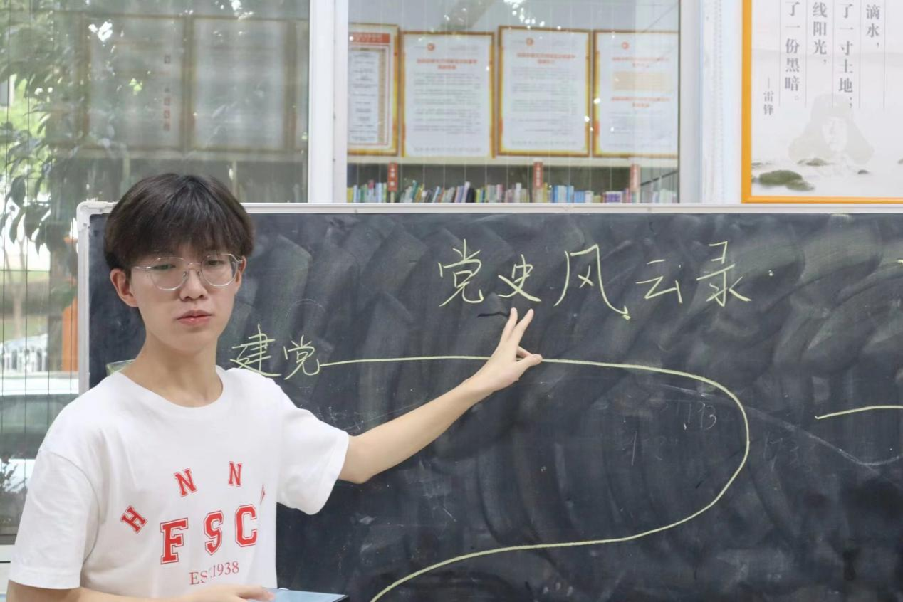 (通讯员 董皓 吴杨炀)7月12日,澳门pg官网赴长沙市学堂坡社区暑期社会实践团(以下简称“实践团”)开展“爱党爱国教育进课堂”活动。实践团成员许天乐、黄乐妍、罗千雯、董皓负责此次课堂活动教学。