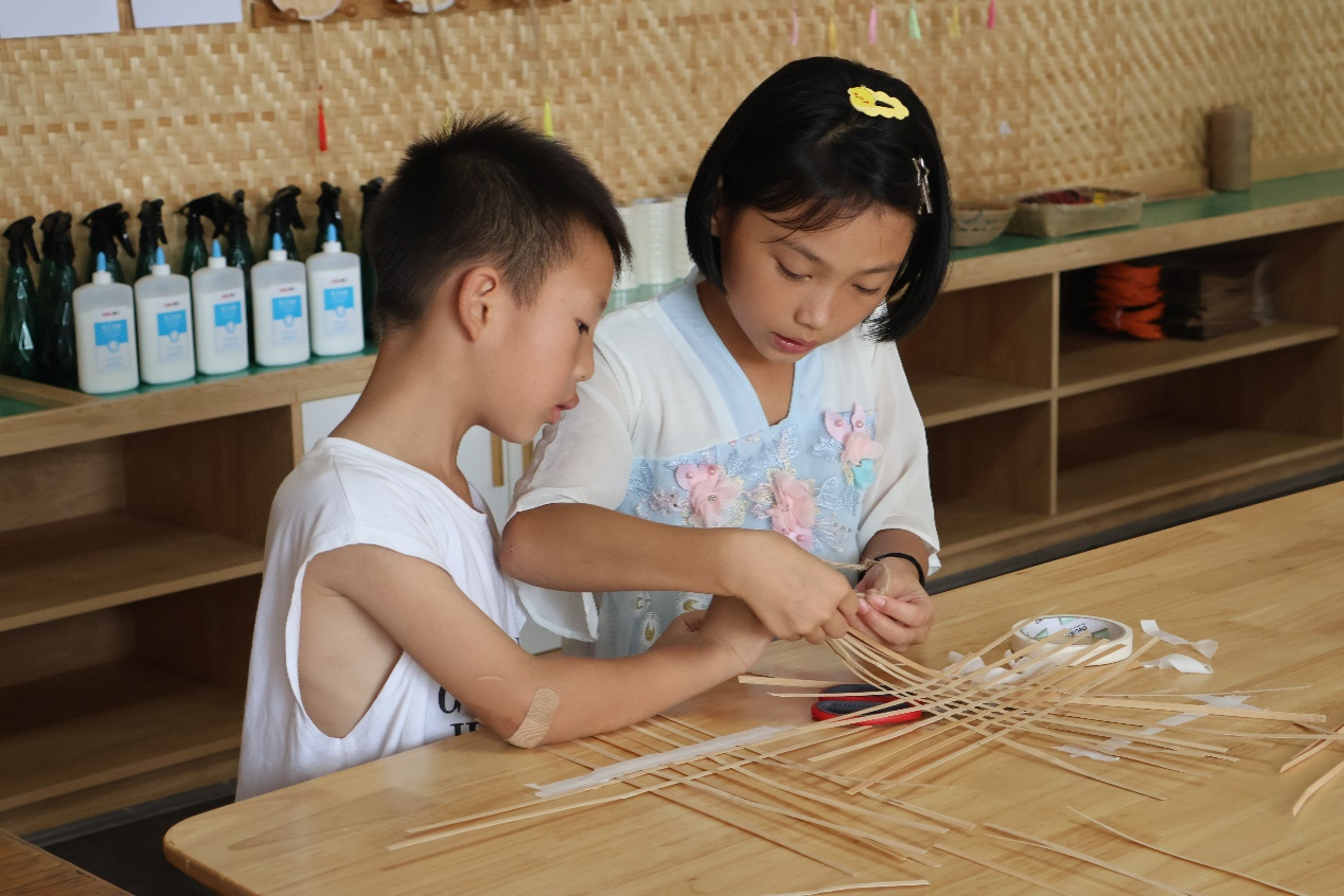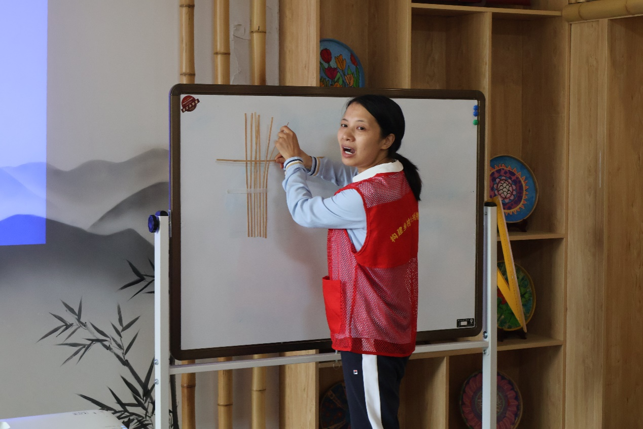 实践团成员协助组织课堂,并且切身体验了涟源竹编文化,与学生们一起学习竹编的基本技巧,与黄云互相交流,感受到了当地的乡土情怀。