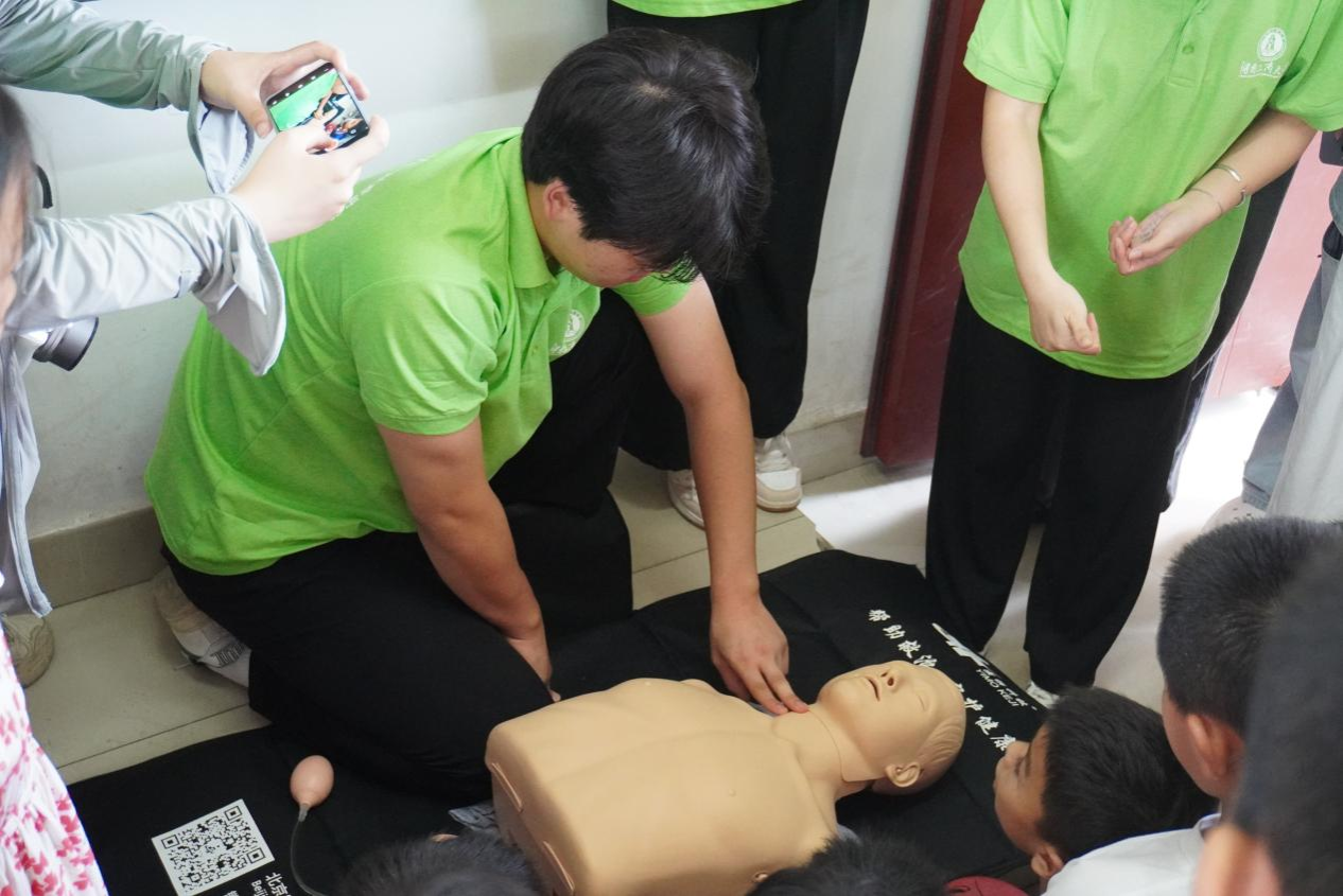 黄忆萱从如何预防溺水、溺水时如何自救和溺水如何施救三方面展开讲解,科普溺水自救常识,同学们踊跃举手发言。随后,杨婷利用带来的人体模型作为教具,将讲解与演示相结合,展示溺水急救流程。同学们积极参与互动,上台展示,将所学运用于实际。课后,同学们表示认识到了防溺水的重要性,对溺水急救有了更全面的理解。