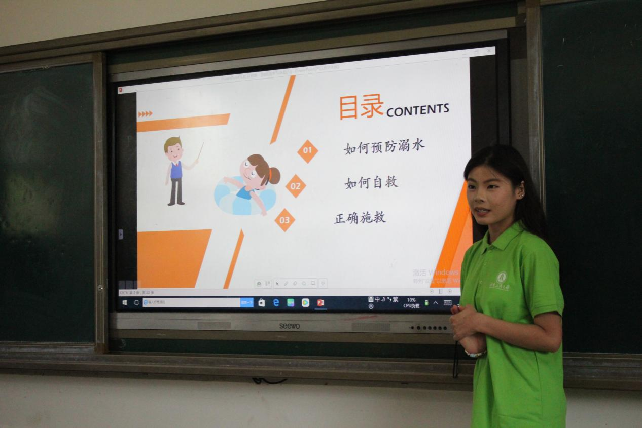 (通讯员 熊博 吴黛琳 周青宜)正值暑期,夏日炎炎,为强化学生安全意识,7月12日下午,“梦启育航,心涟源乡”澳门pg官方电子平台赴涟源三一学校暑期社会实践团(以下简称“实践团”)携手湖南工商大学体育与健康学院“健康赋能、智慧下乡”乡村振兴促进团康桥战队 (以下简称“促进团”),面向涟源三一学校学生开展“珍爱生命,预防溺水”活动。由促进团成员黄忆萱、杨婷担任主讲人,实践团进行协助。