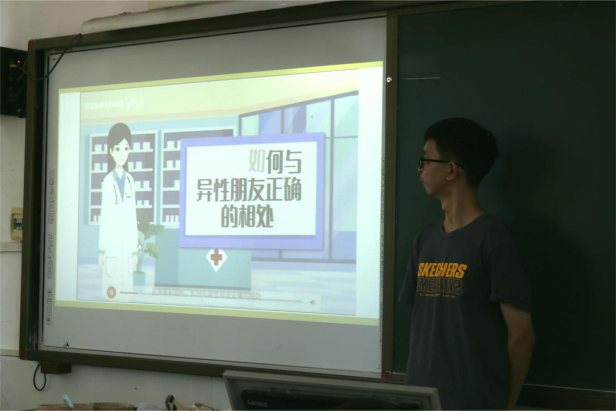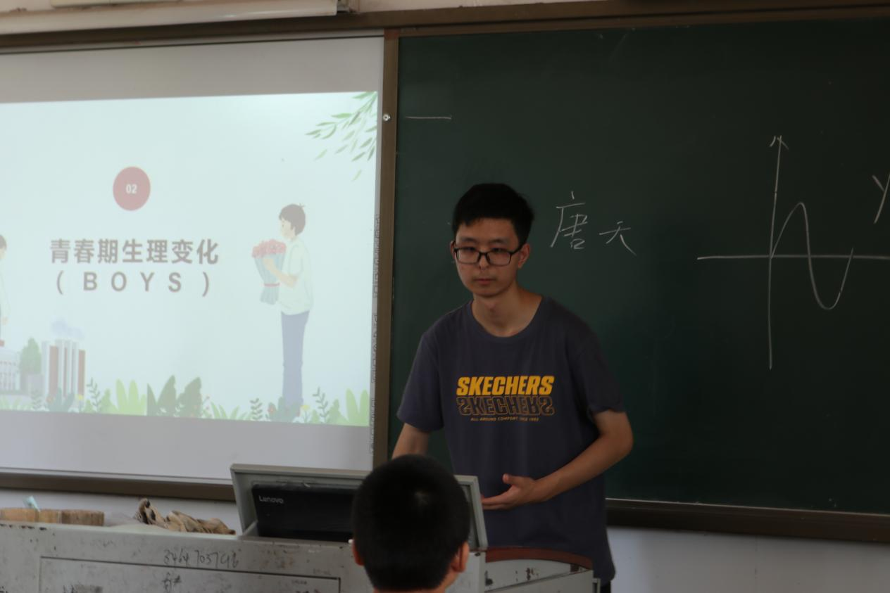 青春期是个人成长过程中的重要阶段,也是身心快速发展的重要时期,乡村儿童由于信息闭塞、教育资源有限等原因,他们在面对青春期时会产生困惑和无助的情绪。为此实践团特别设计本次生命和生理健康教育课程,旨在通过科学的讲解和生动的演示来帮助同学们正确认识和应对青春期的挑战。课程伊始,唐天通过平实的语言,借助简单的生物学知识向同学们讲解了何为青春期,以及在青春期到来时男生和女生分别会发生怎样的变化。唐天结合自身的经验以及生动的案例分析,让同学们在轻松愉快的氛围之中了解到了青春期的生理变化、心理特征以及应对策略。此外课堂上唐天还鼓励同学们大胆发言,分享自己在成长过程中的感受和疑惑,并为他们给予专业的解答和指导。课程最后,唐天还通过“靠近or not”、“我的关注”等两个小游戏向同学们讲述了与异性同学交往的原则以及如何与异性同学友好相处。课堂以情景模拟的方式展现了青春期常见的矛盾和困惑,让同学们身临其境深刻地感受到青春期的复杂性和多样性,并鼓励学生通过自我探索以及互相探讨的方式获得解决方法。