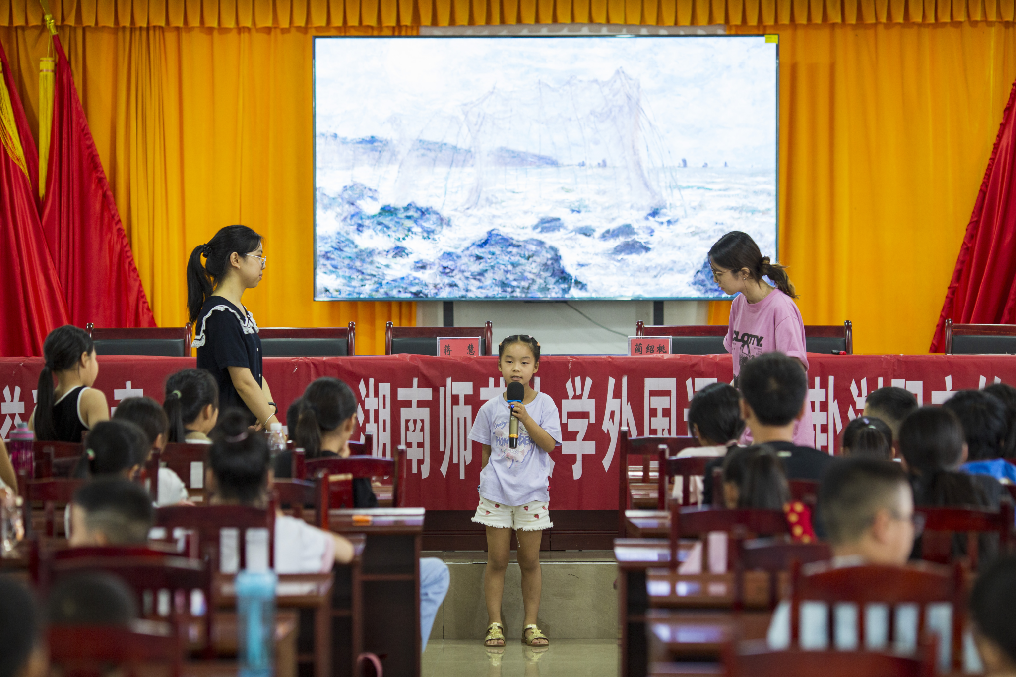 宣讲伊始,阳嘉固简要地阐明了乡村振兴战略的含义,即按照产业兴旺、生态宜居、乡风文明、治理有效、生活富裕的总要求,加快推进农业农村现代化。他详细描绘了乡村振兴的路径、目标和意义,特别是强调了产业振兴、人才振兴、文化振兴、生态振兴和组织振兴这“五个振兴”的核心要义,为孩子们描绘了一幅乡村振兴的美好蓝图。随后,阳嘉固播放了一段关于乡村振兴实践案例的视频。视频播放完毕后,他巧妙设问:“面对家乡的青山绿水,我们该如何通过自身努力,结合当地产业,实现乡村振兴呢?”这一问题瞬间引发了学生们的深入思考,大家纷纷展开讨论,分享自己的想法和见解。