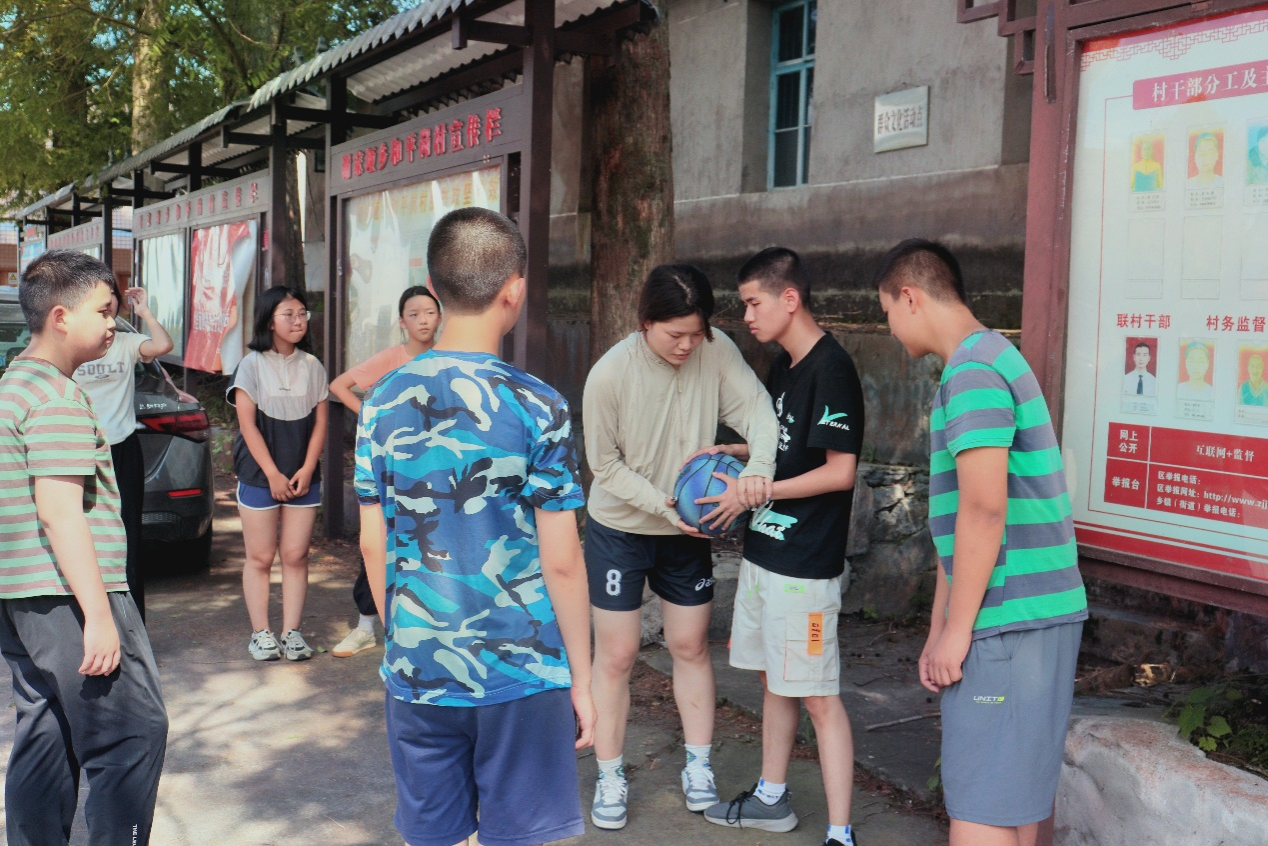 (通讯员 何怡静 张钰源 张璟然)7月16日下午,澳门pg官网赴张家界市和平岗村暑期实践团(以下简称实践团)开展篮球特色课程。此次活动旨在利用高校体育教育资源普及篮球知识,同时提升乡村青少年的体育素养。实践团成员聂缇钰、刘嘉慧担任此次课程的体育教练。