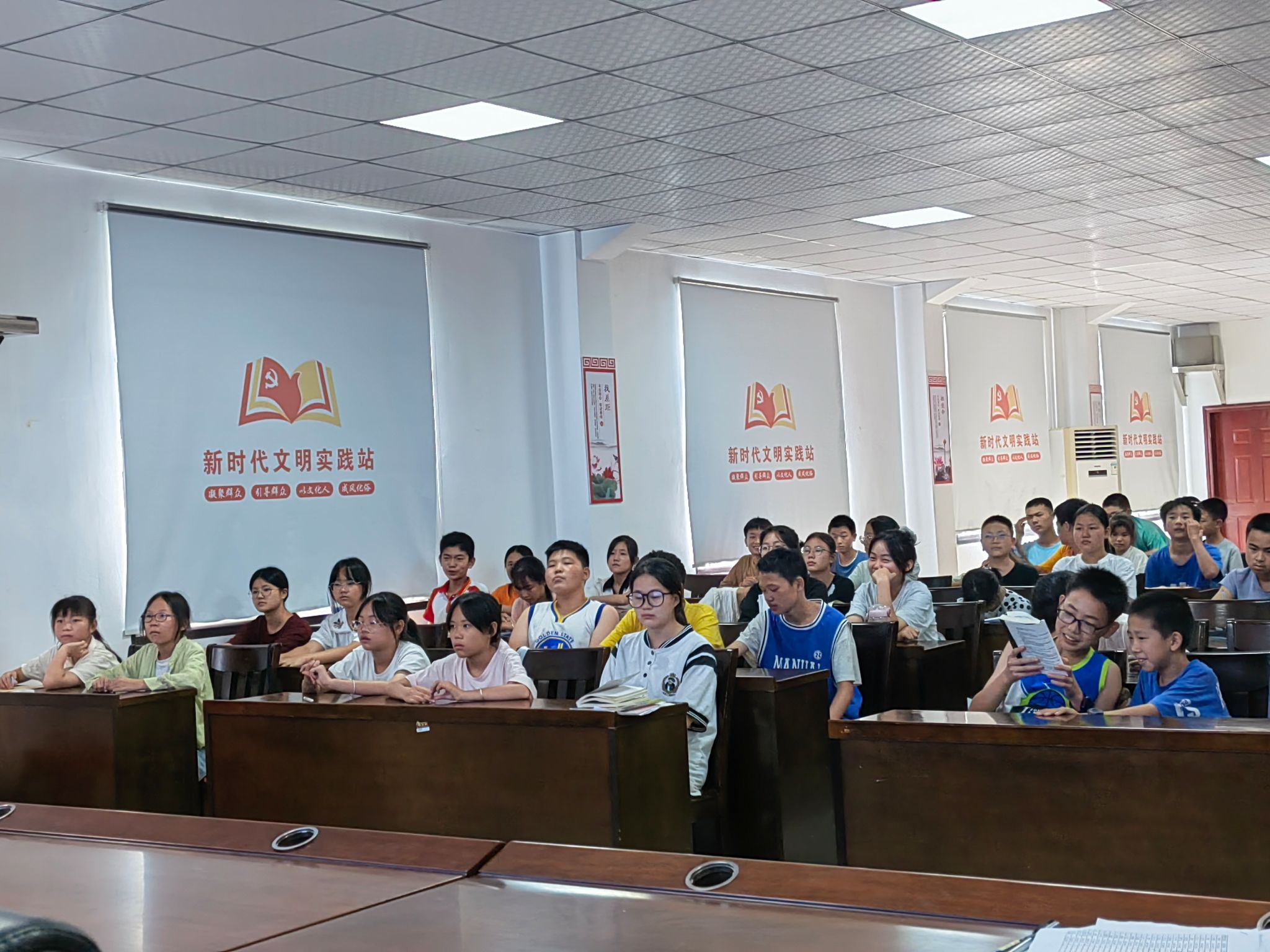 在课堂上,实践团成员播放视频短片,讲述了中国共产党成立过程中的中共一大会议、秋收起义、遵义会议、长征等历史事件。同学们通过短片更加深入地认识到了中国共产党从成立到带领中国人民实现伟大复兴的光辉历程。