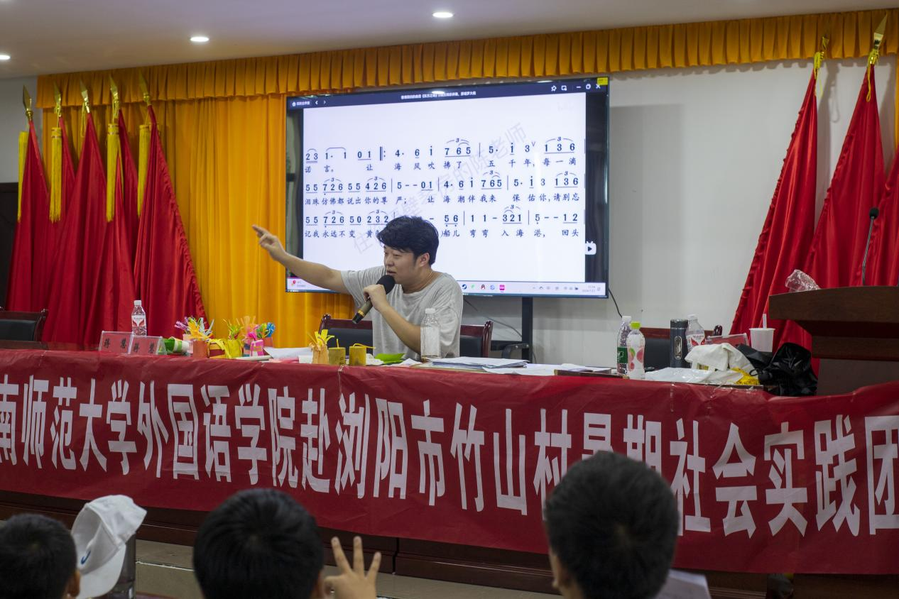 (通讯员 曾琪钰 罗天仪 杨劼)7月17日下午,澳门pg官网赴浏阳市竹山村暑期社会实践团开展“浏”声嘹亮合唱教学课程。此次课程由实践队成员杨三奇负责。