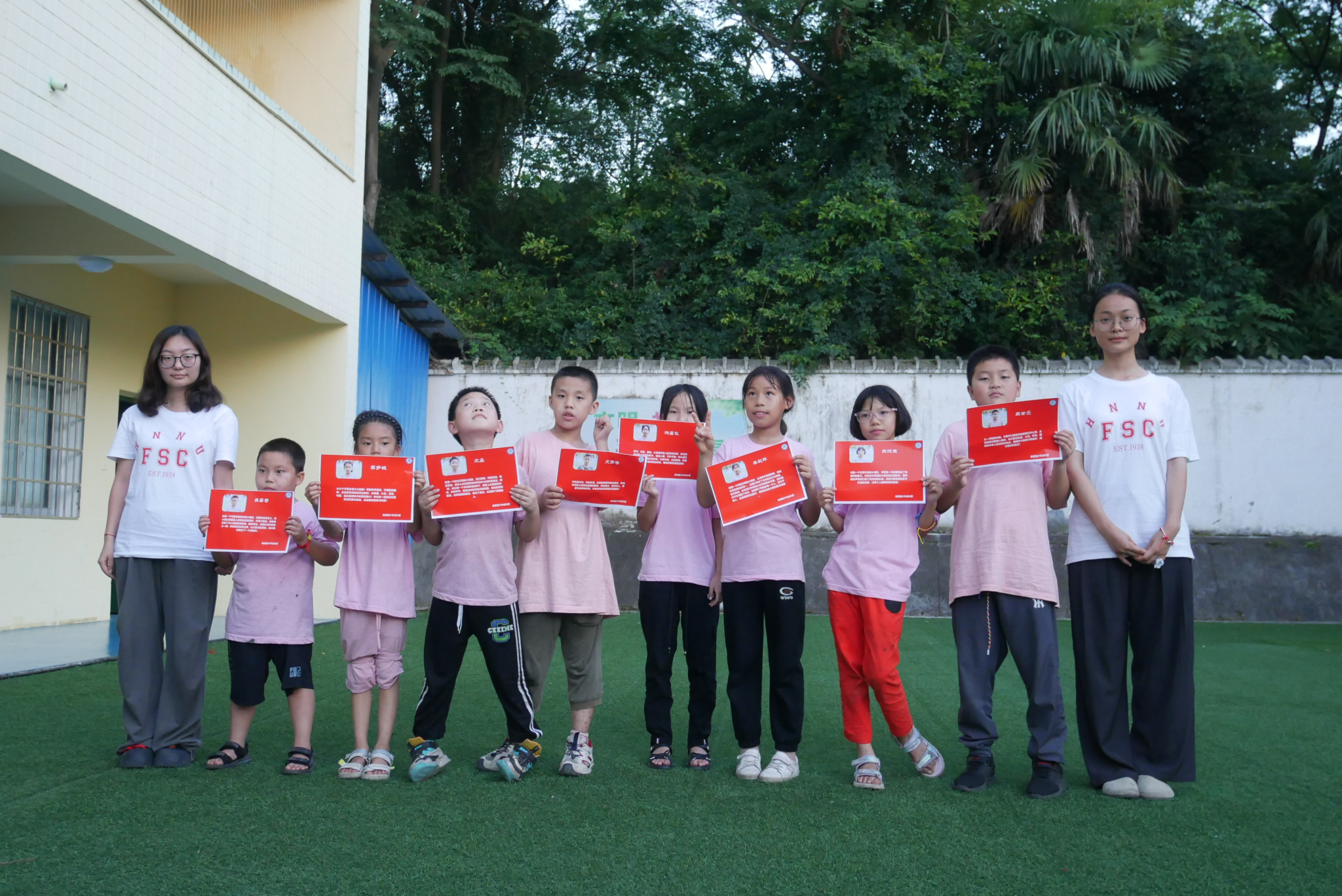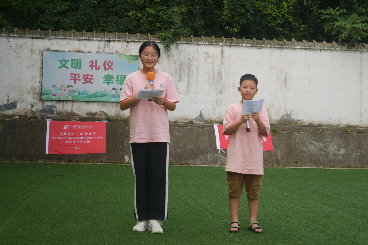 (通讯员 黄玥 罗嘉怡)7月20日上午,澳门pg官网赴常德市临澧县少年成长营暑期社会实践团(以下简称实践团)举行结营仪式。此次结营仪式由临澧县志愿者协会会长谭德才主持,实践团全体成员及成长营全体营员共同参与。