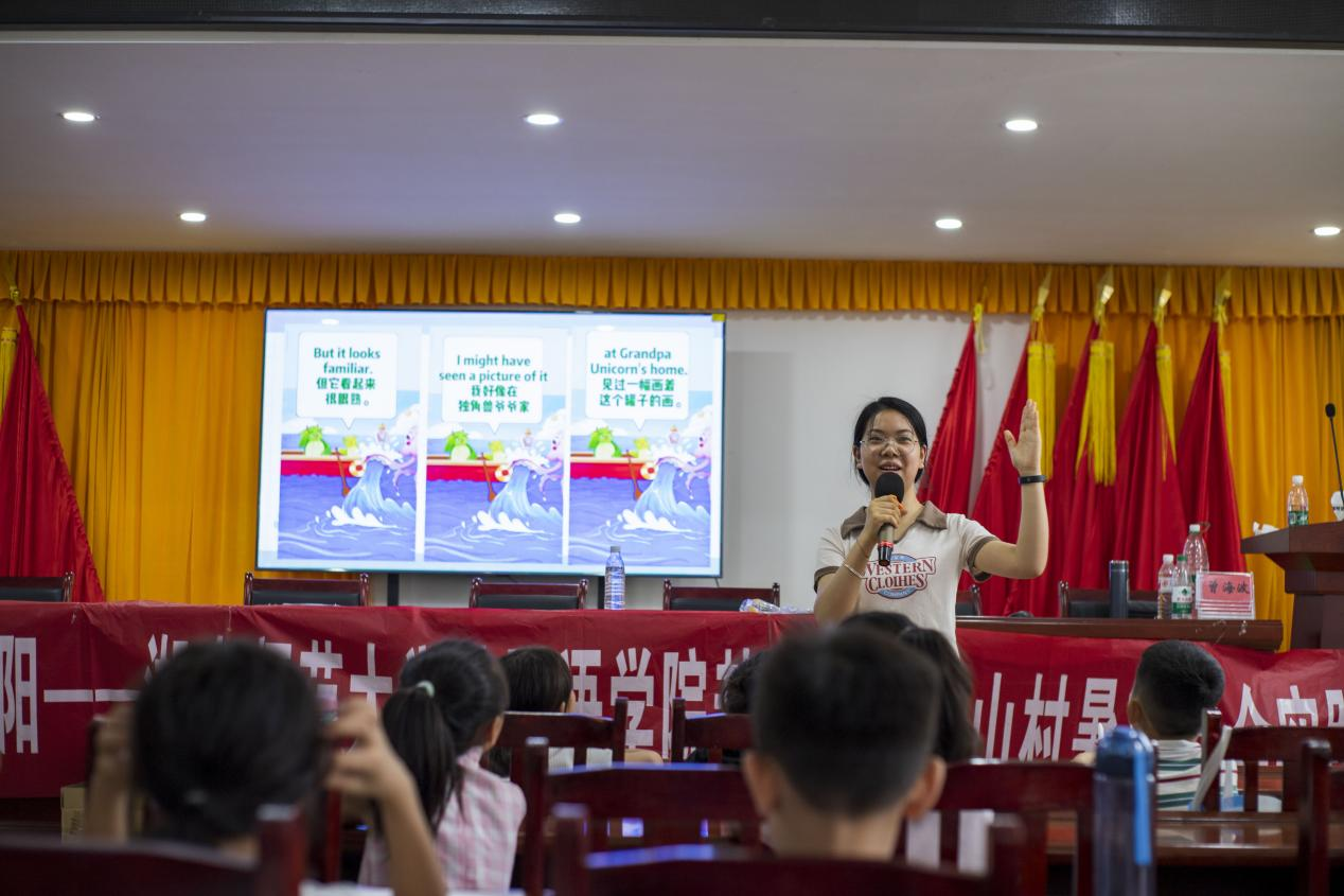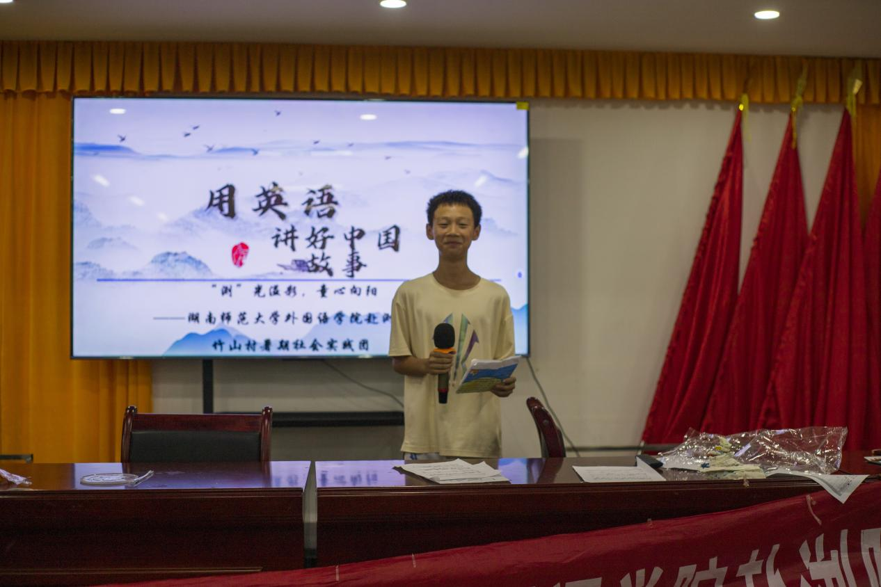 (通讯员 曾琪钰 杨劼)7月23日上午,澳门pg官网赴浏阳市竹山村暑期社会实践团开展“用英语讲好中国故事”特色课程。此次课程由实践队成员周艳花负责。