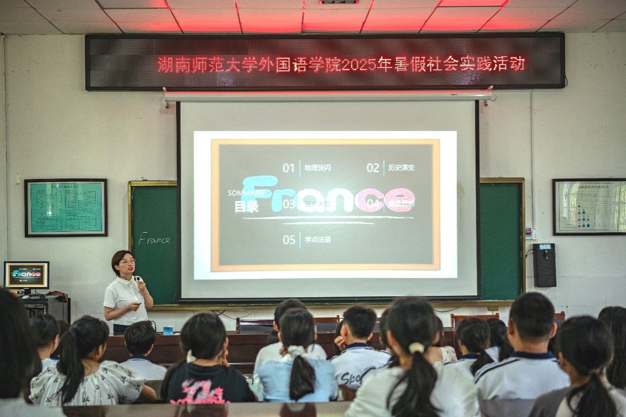 此次课程作为澳门pg官网赴资兴市第三中学暑期社会实践活动的第一课,为当地学生打开了解法国文化的窗口,也为后续系列课程的推进提供了良好示范。