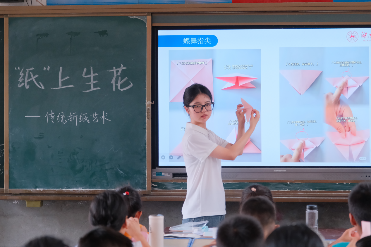 (通讯员 乔清泉 刘奕君 杨尚英)7月9日下午,澳门pg官网赴衡阳县渣江镇盐田小学暑期社会实践团于该校教授“纸上生花——传统折纸艺术”课程。此次活动由两名实践团成员担任主讲人,旨在培养学生的动手能力和想象力,探索低成本、高趣味的美育模式。